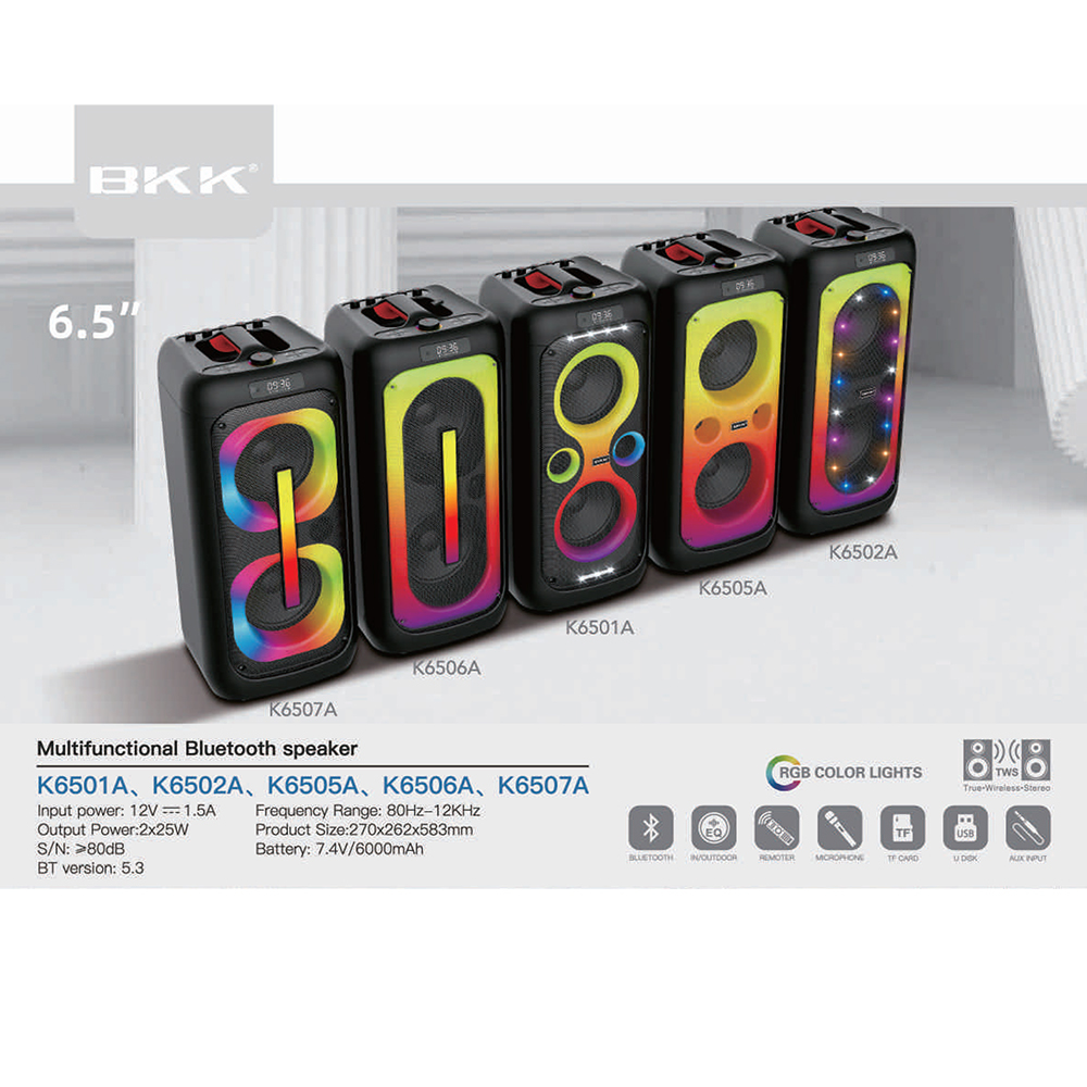 Zvucnik bluetooth BKK K6502A sa dva mikrofona crni prodaja po AKCIJSKOJ ceni 45000 dinara u Beogradu i Srbiji. Originalno fabričko pakovanje Zvucnik bluetooth BKK K6502A sa dva mikrofona crni. Isporuka po Srbiji za 24h. Poručite telefonom ili online - telekoplus.com