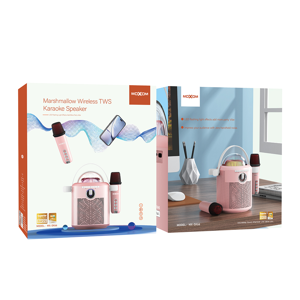 Zvucnik Bluetooth Moxom MX-SK66 sa dva mikrofona pink prodaja po AKCIJSKOJ ceni 10000 dinara u Beogradu i Srbiji. Originalno fabričko pakovanje Zvucnik Bluetooth Moxom MX-SK66 sa dva mikrofona pink. Isporuka po Srbiji za 24h. Poručite telefonom ili online - telekoplus.com