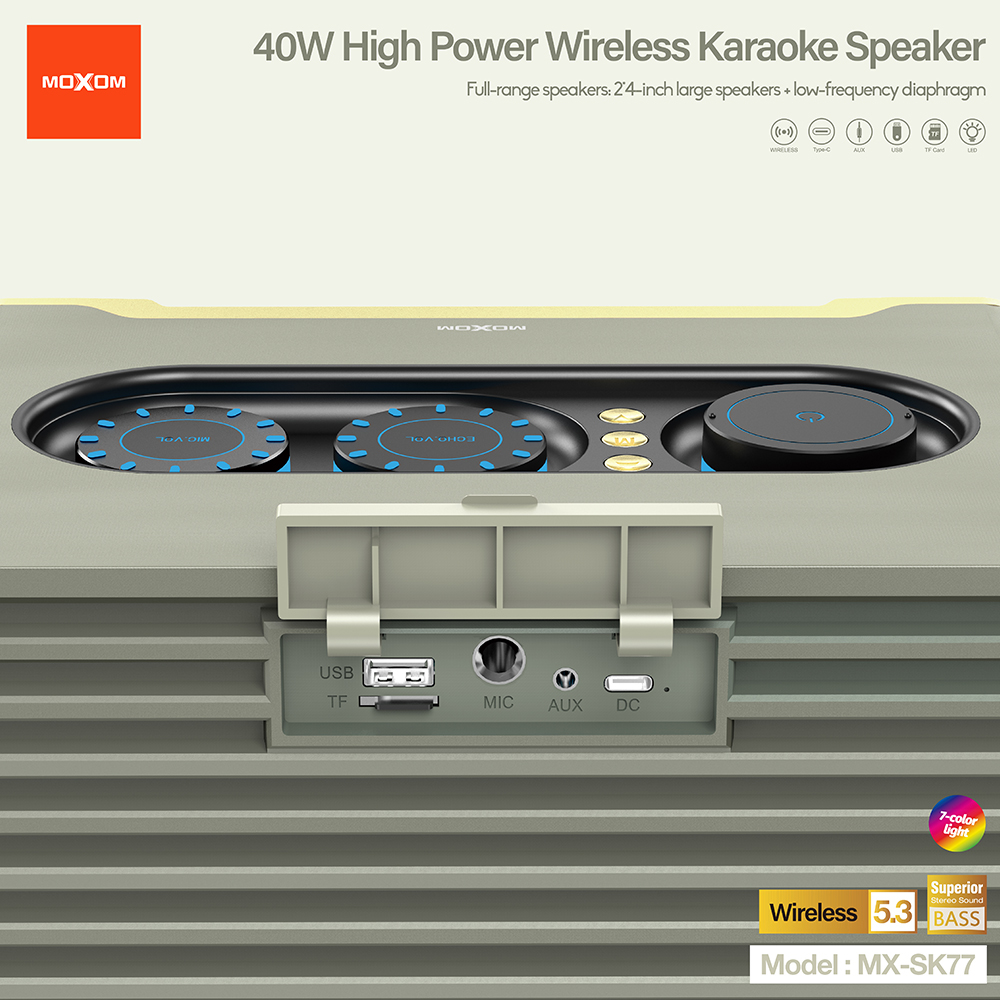 Zvucnik bluetooth Moxom MX-SK77 sivi prodaja po AKCIJSKOJ ceni 20000 dinara u Beogradu i Srbiji. Originalno fabričko pakovanje Zvucnik bluetooth Moxom MX-SK77 sivi. Isporuka po Srbiji za 24h. Poručite telefonom ili online - telekoplus.com